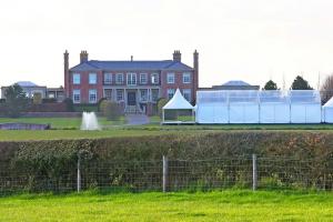 上周工人们在鲁尼位于柴郡的价值2000万英镑的豪宅花园里搭建了这个大型结构,昨天还安装了户外取暖设备。