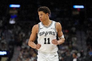 本场比赛,马刺今年14号秀卡特·布莱恩特发挥不错,尤其外线手感火热,他替补出战25分钟,9中6,三分6中5拿到17分5篮板(3前场篮板)4助攻1抢断,正负值+6。