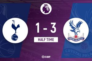 上半场补时8分钟。半场战罢,热刺1-3水晶宫。