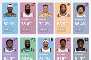 注:要求球员至少出战40场,上场时间至少20分钟
