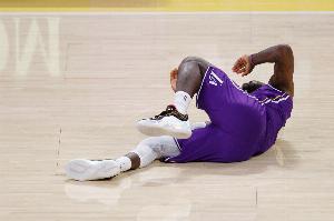 “拜托兄弟,这家伙想去参加吹牛老爹的派对呢。你看,最后还得让人扶起来。我真服了。勒布朗,你这也太离谱了。有些人就是想早退去参加吹牛老爹的派对。勒布朗,你到底怎么回事?你演技烂透了。你是世界上最差的演员,但这是在欺骗比赛。我之前说的欺骗比赛,指的就是这种行为。”
